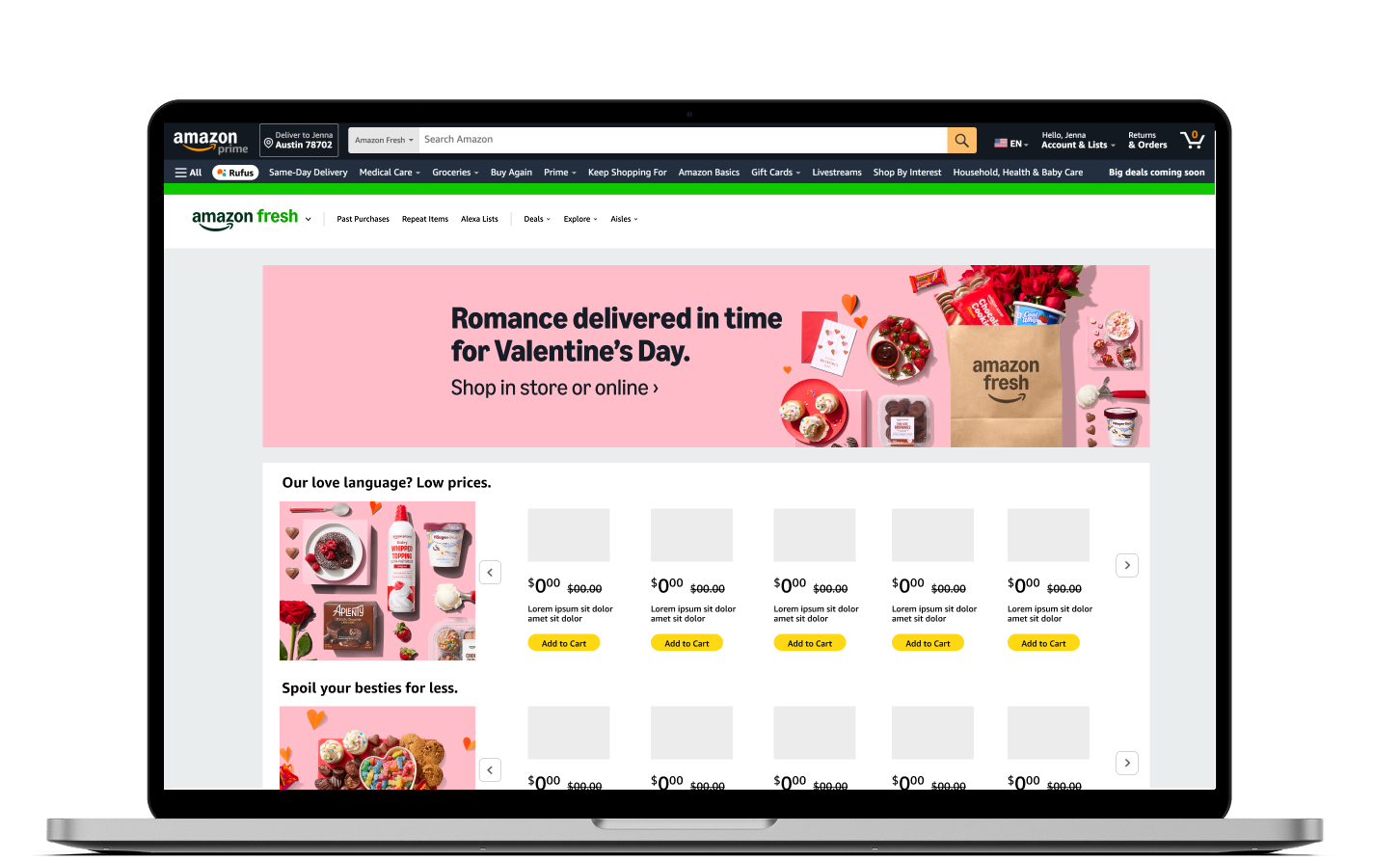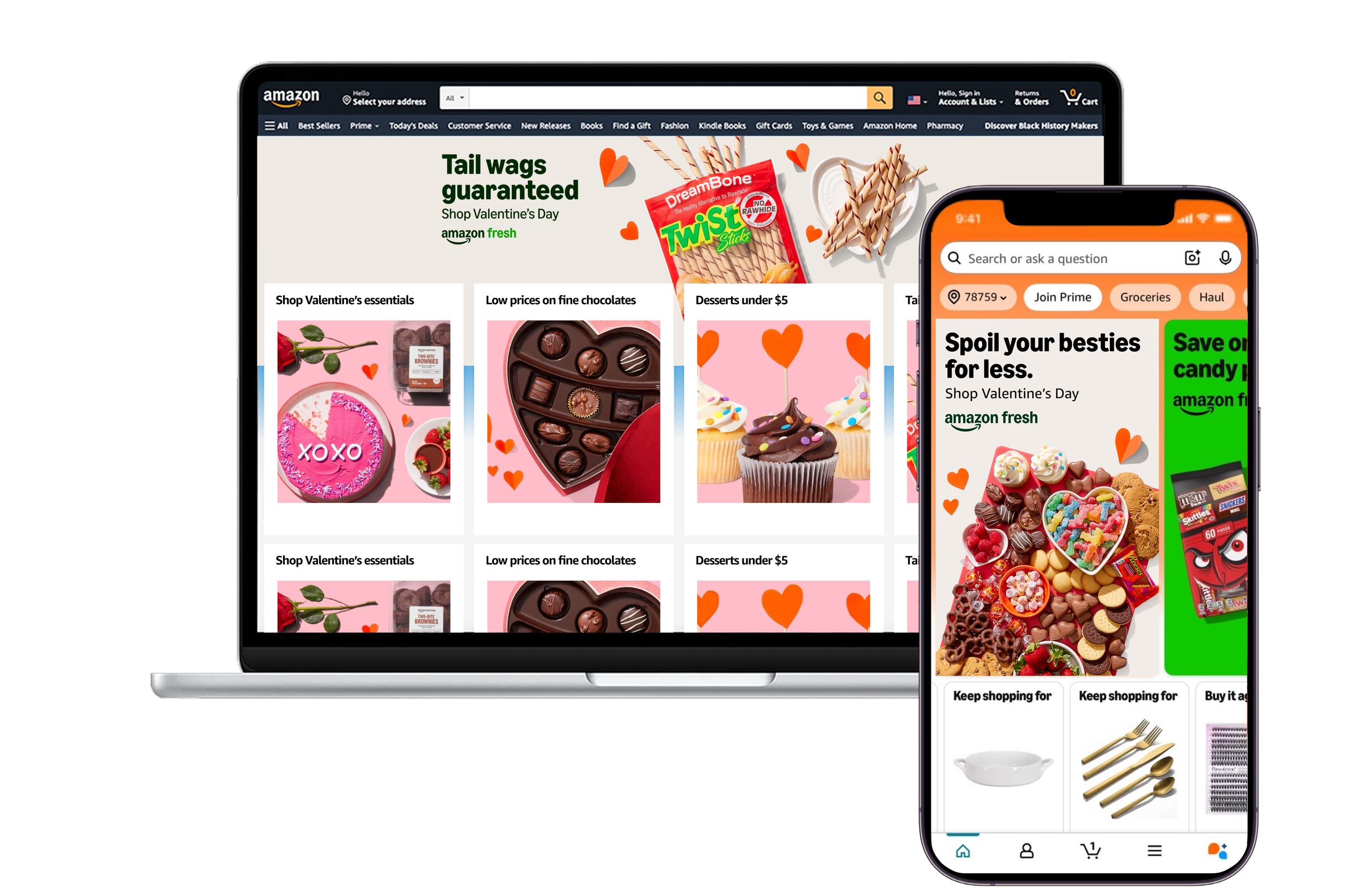Amazon Fresh has low prices on the groceries you need to make Valentine’a Day extra special. Whether you’re picking up double-dozen roses for your partner or chocolate for your Galentine’s celebration, they make it easy with convenient shopping options. Love is for everyone–and at Amazon Fresh, you can find it in every aisle.